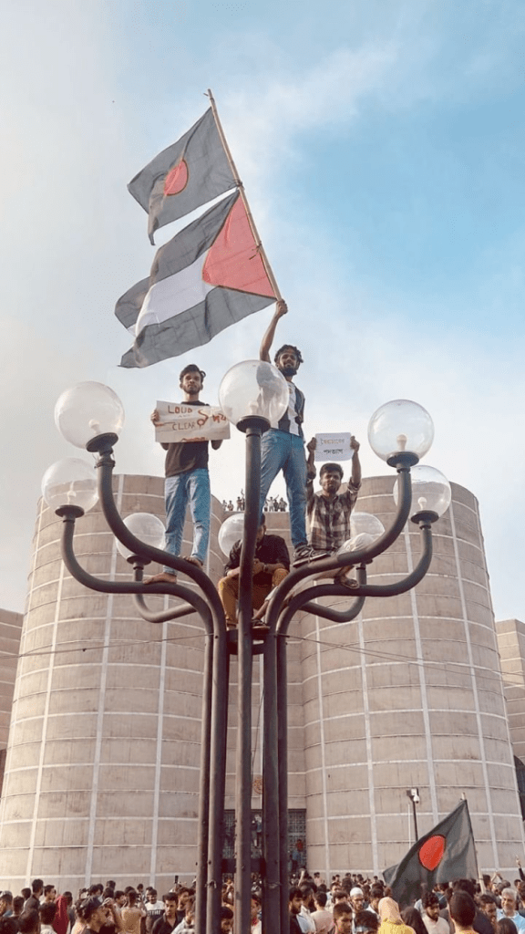 An August 14 post by Naveeda Khan compiled the kinds of jokes and mockery used in messaging by the student movement. In an article written during the Internet blackout, Associate Professor of Political Science at Colgate University and author of India’s Bangladesh Problem: The Marginalization of Bengali Muslims in Neoliberal Times, Navine Murshid wrote, “After all, this was a movement borne out of unemployment and bleak job prospects for students. The PM’s rhetoric simultaneously trivialized and politicized their concerns by calling them rajakar — both of which explain the explosion of anger in the following days.” In dispatches smuggled out of the country during the protests and government blackout, writer and photographer Shahidul Alam documented the violence against students and the mounting determination of students to seek accountability for their peers who had been killed, injured, and detained. Journalists like Shafiqul Alam risked their lives to report on the mass uprising, running to sites of violence and morgues to gather information in an atmosphere or terror and information blackout, and provided important context of the government’s corrupt activities.